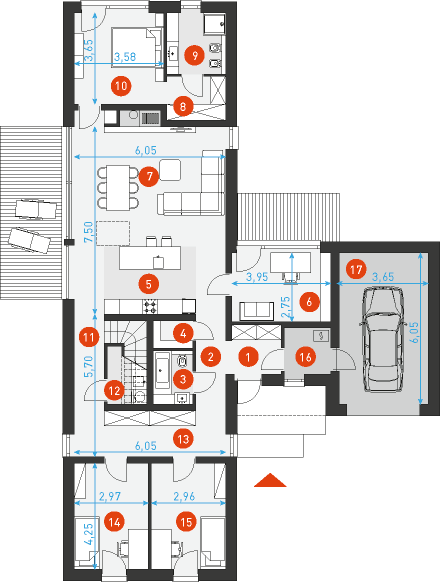 Полностью готовый дом с коммуникациями - вода, электричество, канализация и отопление.