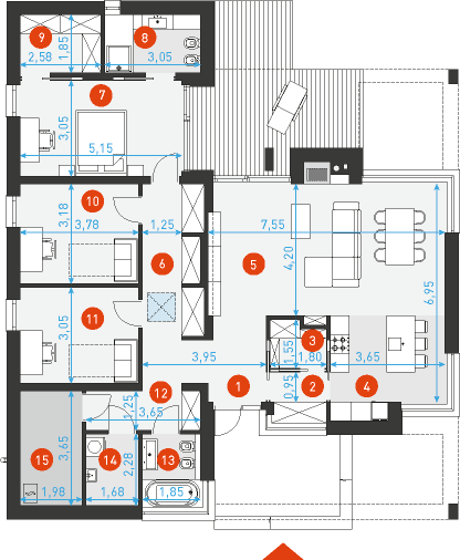 Полностью готовый дом с коммуникациями - вода, электричество, канализация и отопление.