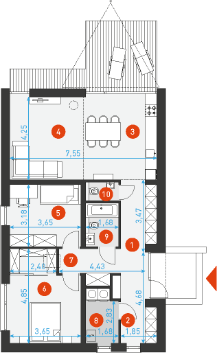 Полностью готовый дом с коммуникациями - вода, электричество, канализация и отопление.